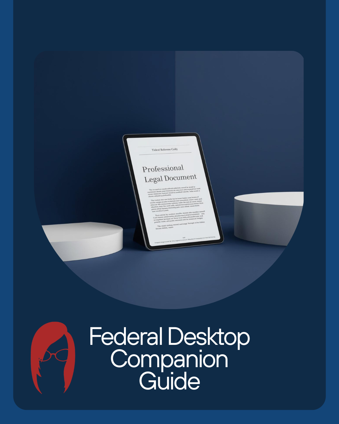 Condensed core reference designed for quick on-screen lookup. 9 sections including core tables, deadline computation, glossary, and language decoder. Included free with every Federal Beta enrollment.